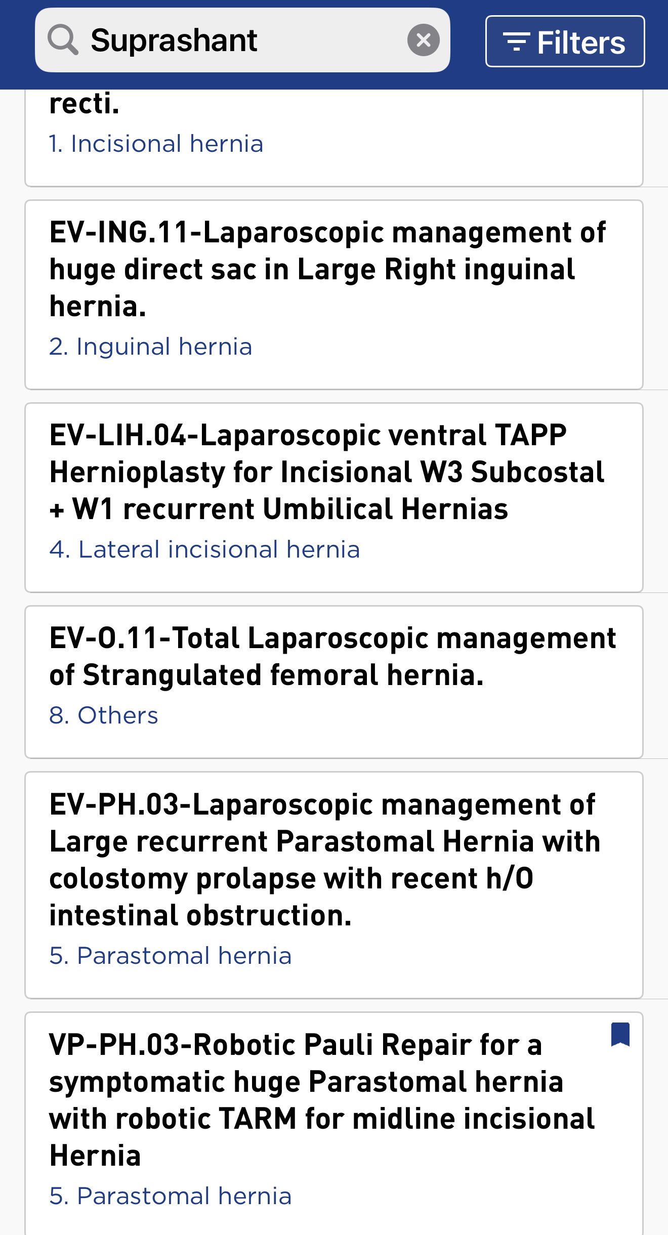 It was a dream come true to have so many presentations accepted at a single conference, each video focusing on a different technique/region/type of hernia.